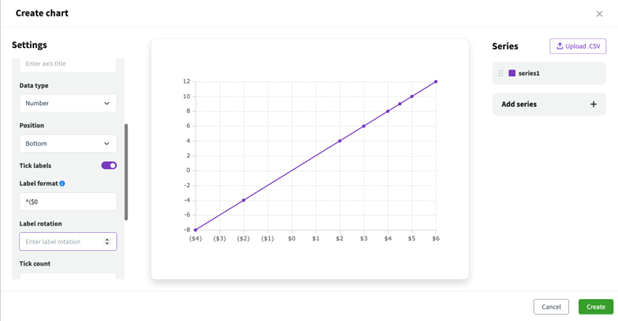 The Widget Editor supports formatting codes to define the format of axis labels. The code-entry field allows custom formatting codes.