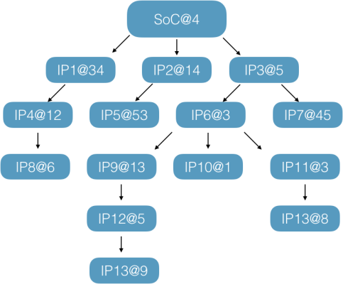IP Hierarchies are built up from the parent-child resource relationships of each IPV in the system. They constitute a Project Component and IP BOM (CIPB) which may represent a large SoC or a smaller subsystem.