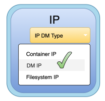 Container IPs are identical to DM type IPs with the single difference that they do not manage DM level files. They do however have resource IPs, and support the same types of metadata that are supported by DM type IPs.