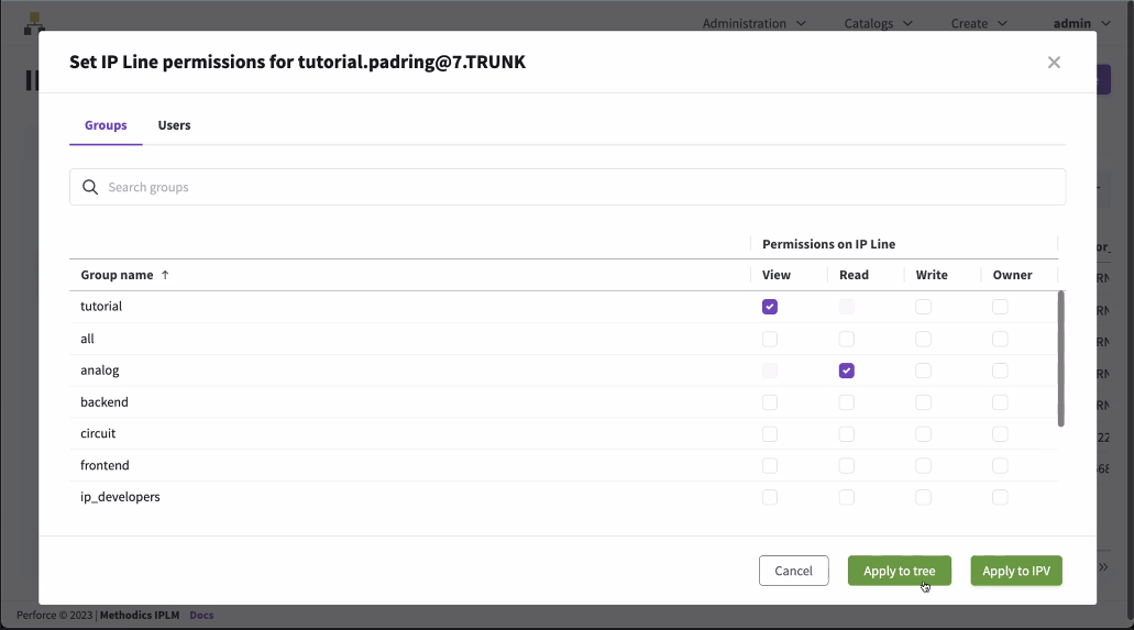 Select the permissions, then select Apply to tree to assign the permissions to the IP Hierarchy.