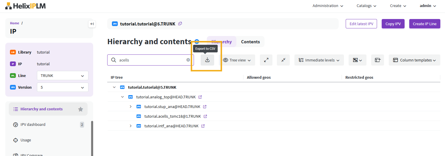 to export the IPVs displayed to a CSV file. This is useful if you want to make changes to the data outside of IPLM Web.