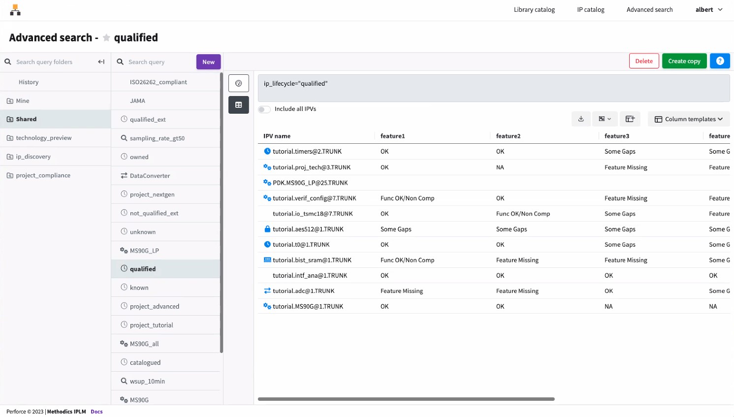 IPLM Webprovides a searchable, filterable high performance IP catalog, which presents IP results in a clear and understandable results format. The IPLM Web Query Builder can be used to build powerful query expressions using a simple interface. These expressions can be saved and shared for later use.