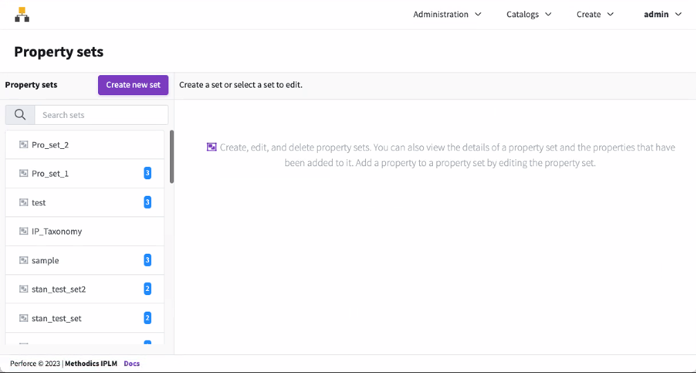 Open Property Sets under Administration → Property Sets. To add a new Property Set, select Create New Set.