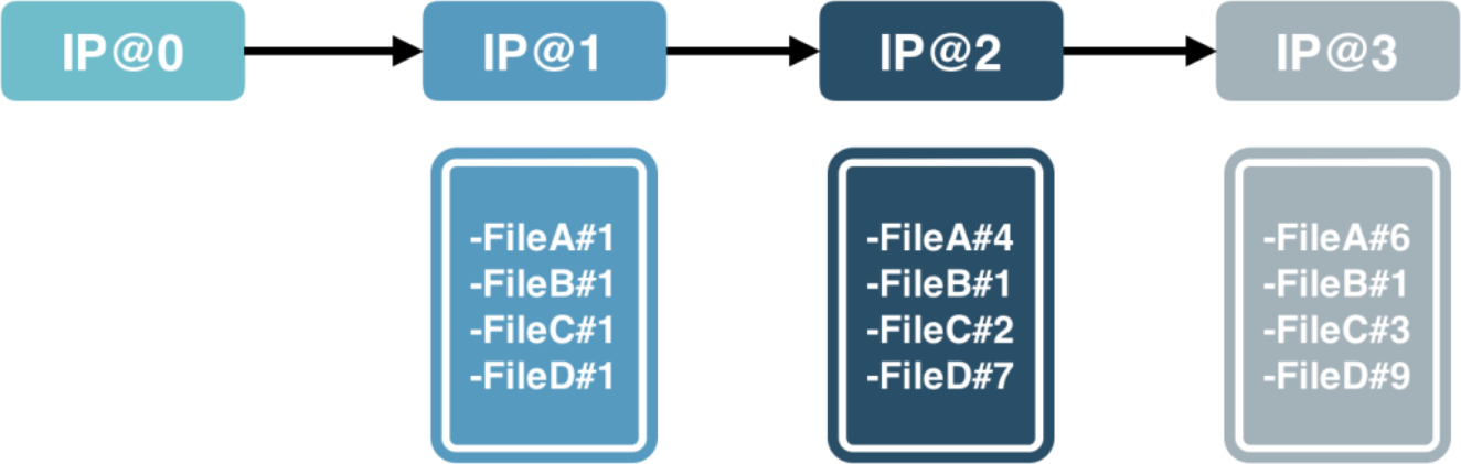 Perforce format IP contents are pictured in this diagram. Each release of the IP captures a set of files that make up the contents of the release. When the IP is populated into the workspace the IPs captured file list will be populated into the workspace at the specified versions in the release.