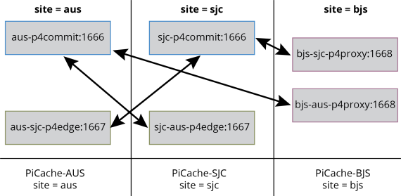 However, sometimes it is necessary to define multiple independent P4 commit servers. Geographical data distribution, security auditing, third party design collaboration, and, in extreme cases, data volume management can all be addressed with P4 data federation and multiple P4 commit servers.