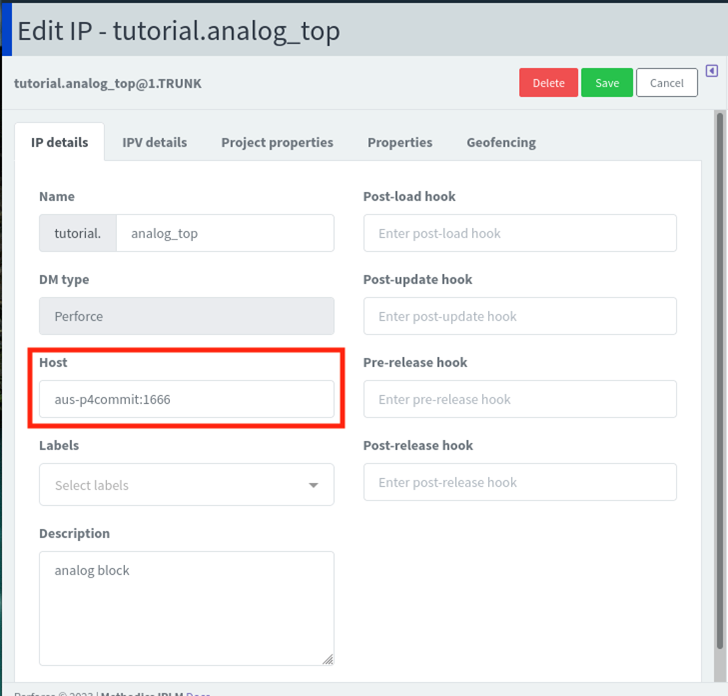 Tip: The host field on dmtype p4 IPs is supported Perforce IPLM version 2.32 and later. For P4 streams DMHandler, currently the host field is invalid and is managed in a special IP property. Refer to P4 streams documentation for details.
