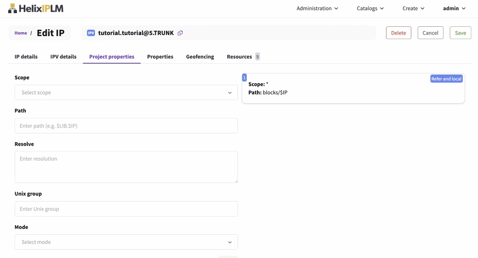 | Project properties | Project properties are set on IPVs and configure IPs and how they are built in the workspace, including workspace (unix) permissions, and placement in the workspace |