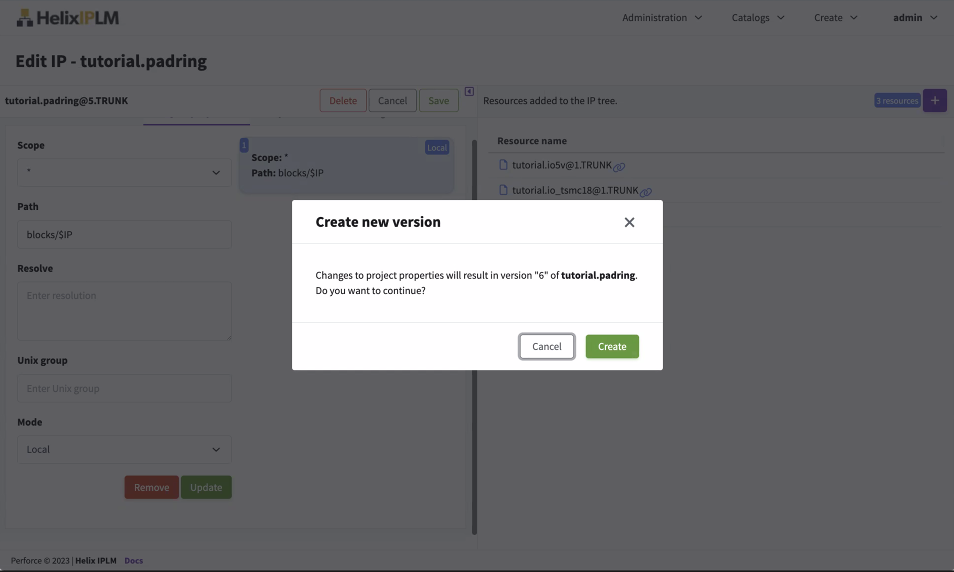 - Once complete, click Save on the top of the form to make a new release of the IP with the new project properties settings. Then click Create.