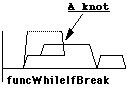 The break jumps to the end of the while statement and causes a knot (this is where the control flow crosses the boundary of another statement block, indicating unstructured code). In this case, once the break has jumped to the end of the while statement, the next part of the program - the if statement - is executed.