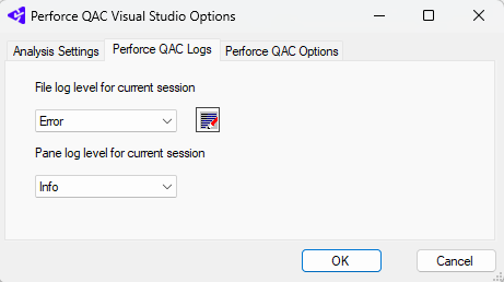 Options: Perforce QAC Logs Dialog