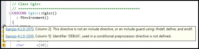 In the Source Code Editor, the lines that are associated with diagnostic messages are marked. Right-click on the line marker and the list of messages will be displayed in a pop-up. Message help can be viewed by clicking on the hyperlinks in the pop-up.