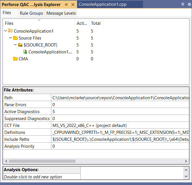 Perforce QAC解析エクスプローラ:ファイルパネル