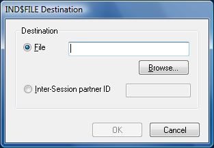 While running a TN3270 emulation session, a user may type the IND$FILE command, complete with all required parameters. HostAccess will recognise that this has occurred when the mainframe starts the transfer. At this point, the user is prompted to enter the name of the PC file being sent or received.