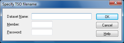 For a TSO host, the dataset name must be specified, either with or without quotes and the member name (for a partitioned dataset) and dataset password can be entered. If you enter a password, it will not be displayed at this point.