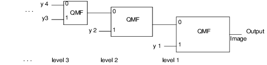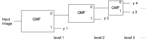 Computing the wavelet transform of an image using a compactly supported orthonormal wavelet is equivalent to applying the quadrature mirror filter-bank structure to the image as shown in the following figure.