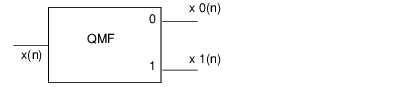 The input and output sequences of each block in the figure represent the inputs and output of the forward part of the quadrature mirror filtering technique. The specific input-output relation between each block and the quadrature mirror filter is shown in the following figure.