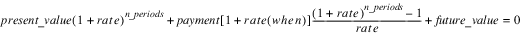 present_value + (payment)(n_periods) + future_value = 0