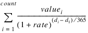 In the equation above, di represents the ith payment date, d1 represents the 1st payment date, and valueI represents the ith cash flow.