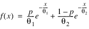 In the case of a convex mixture, that is, the case 0 < p < 1, the mixing parameter p is interpretable as a probability; and RANDOM with probability p generates an exponential deviate with mean θ1, and with probability 1 − p generates an exponential with mean θ2. When p is greater than 1, but less than θ1/(θ1 − θ2), then either an exponential deviate with mean θ1 or the sum of two exponentials with means θ1 and θ2 is generated. The probabilities are q = p − (p − 1) (θ1/θ2) and 1 − q, respectively, for the single exponential and the sum of the two exponentials.