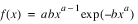Weibull—If present and nonzero, the random numbers are generated from a Weibull distribution. Requires the Parameters keyword to specify the parameters (a, b) for the distribution. The parameter a is the shape parameter, and it is required. The parameter b is the scale parameter, and is optional (Default: b = 1.0).