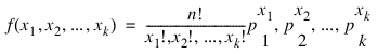 k=N_ELEMENTS(Probabilities) and ntrials must be positive. Each element of Probabilites must be positive and the elements must sum to 1. The probability function (with n = n, k = k, and pi = Probabilities(i)) is:
