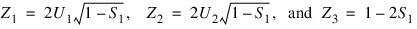 For spheres in three or four dimensions, the algorithms of Marsaglia (1972) are used. For three dimensions, two independent uniform (–1, 1) deviates U1 and U2 are generated and accepted only if the sum of their squares S1 is less than 1. Then, the coordinates: