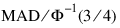 is the inverse of the standard normal distribution function evaluated at 3/4. This standardizes MAD in order to make the scale estimate consistent at the normal distribution for estimating the standard deviation (Huber 1981, pp. 107–108).