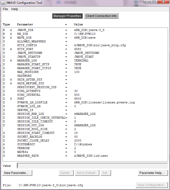 PORT parameter in the Manager Properties list of the JWAVE Configuration Tool and its description in