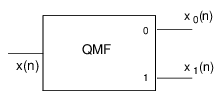 The input and output sequences of each block in the figure represent the inputs and output of the forward part of the quadrature mirror filtering technique. The specific input-output relation between each block and the quadrature mirror filter is shown in