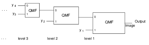 Computing the wavelet transform of an image using a compactly supported orthonormal wavelet is equivalent to applying the quadrature mirror filter-bank structure to the image as shown in