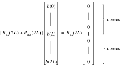 where the filter length n = 2L + 1 and the matrices Rss and Rnn are Toeplitz, defined by: