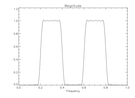 PLOT, f, ABS(hf), Title = 'Magnitude', XTitle = 'Frequency'