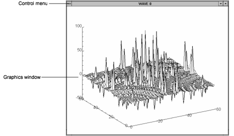 The location of the graphics window Control menu button for a Windows window is shown in Graphics Window.