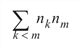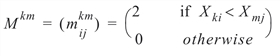 where Xki is the ith observation in the kth population, Xmj is the jth observation in the mth population, and each matrix Mkm is nk by nm where ni = n(i). Let Skm denote the sum of all elements in Mkm. Then, result(1) is computed as the sum over all elements in Skm, minus the expected value of this sum (computed as: