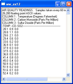 top=WwInit('ww_ex12', 'Examples', layout)filename = getenv('WAVE_DIR')+ '/data/air_qual.dat'text=WwText(layout, 'TextCB', /Read, File=filename, Cols=40, $