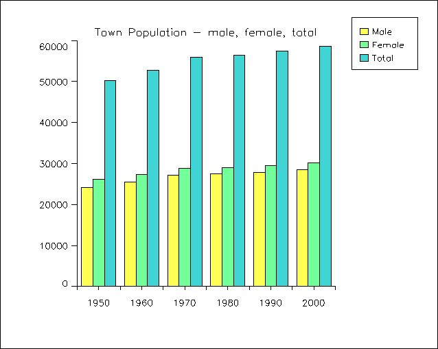BAR, TRANSPOSE([[male_data], [female_data], [total_data]]), $
