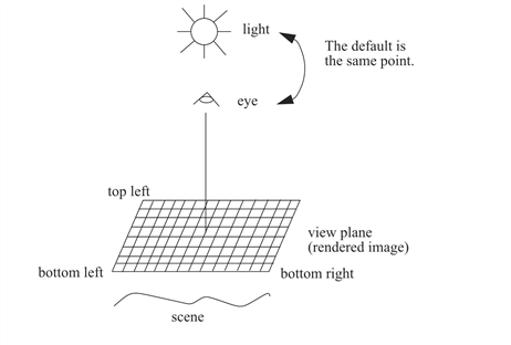 Unless otherwise specified, a single-point light source is defined to coincide with the observer’s viewpoint. The Lights keyword can be used to pass in an array of locations and intensities of point light sources.