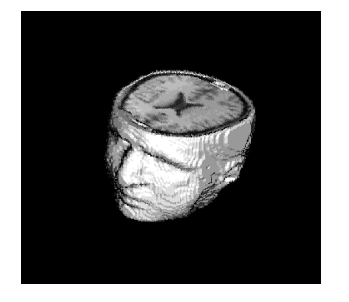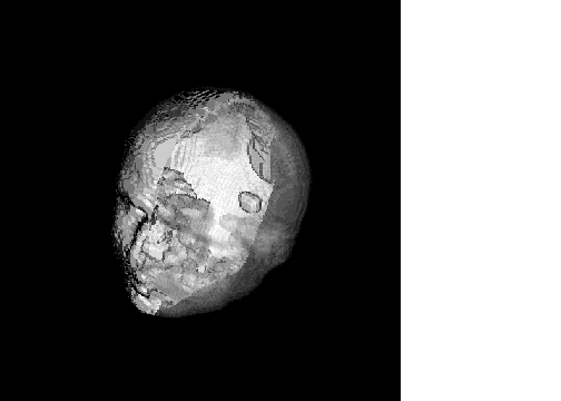 This example renders a diffuse iso-surface and a partially transparent iso-surface. The results, shown in Head with Transparent Surface, are saved to a file and displayed using show_tran_head.