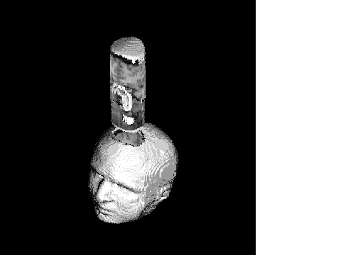 This example constructs a polygonal mesh (iso-surface) of diffusely-shaded polygons. The default light source is at the eye-point.
