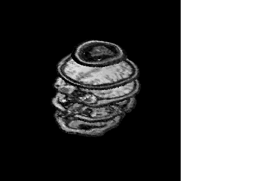 This example renders two diffuse iso-surfaces as well as actual voxel values. The results, shown in Two Volumes in One Image, are saved to a file and displayed using show_core_head.
