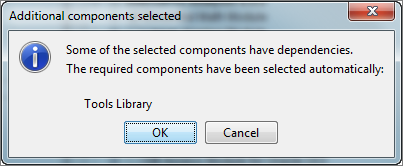 RCB checks that all dependent components are installed before continuing with the buildspec question sequence. A popup screen appears to inform you of the additional necessary components.