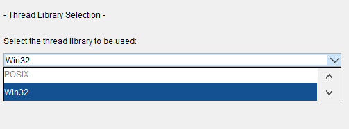 The choices available depend on the threading libraries supported by your choice of operating system (for example, Windows supports only Win32, but Solaris supports posix, and solaris threads).