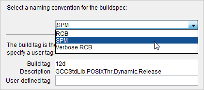 NOTE: The build tag also determines the buildspec name; that is, a build tag of 12s creates a buildspec of the name 12s.bsf. If your buildspace already contains a buildspec for the configuration you are defining, the new buildspec will overwrite the existing one unless you specify a different naming convention or supply a user-defined tag.