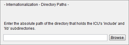 If you chose Use my own installation of the ICU, you must specify the path to the ICU installation.