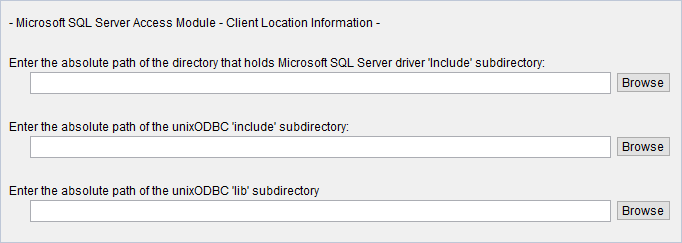 On Linux, the SQL Server Client line on the screen above does not display; rather, provide client location information on an additional dialog: