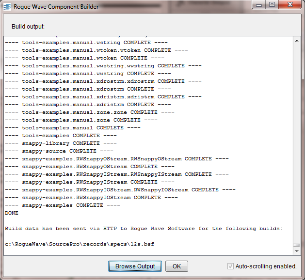 Build Report.Deselect Auto-scrolling enabled to prevent RCB from continually displaying the latest action taken while executing the build.