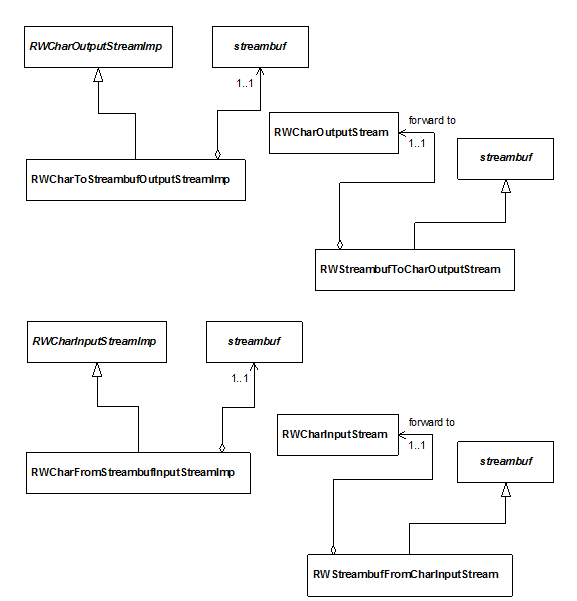 In addition to the classes described in the common architecture sections, the narrow character streams include the concrete classes shown in