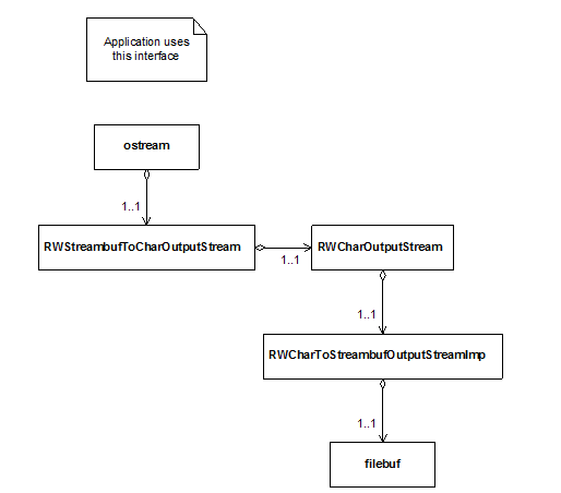 RWCharToStreambufOutputStreamImp, which in turn uses an iostreams