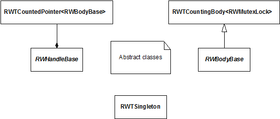 RWHandleBase provides constructors, destructor, assignment operator, equality and inequality operators, and the