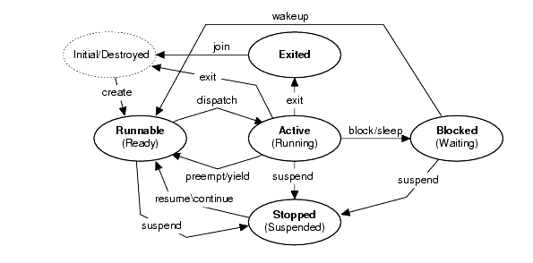 RW_THR_TIME_SLICED_DYNAMIC — In systems with dynamic time-sliced scheduling, threads still run either until they are preempted by a thread of higher priority, until some time-quantum has elapsed, or until blocked. The difference is that the priority and/or time-slice quantum assigned to a thread can be altered dynamically by the system to give some level of fairness and optimization.